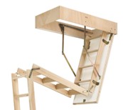 Escalera escamoteable de madera de pino muy funcional y económica. Formada por 3 tramos,